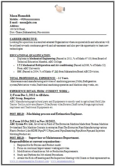 Sample template example of beautiful excellent professional cv format for final year engineering students.